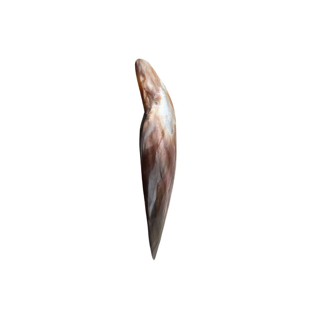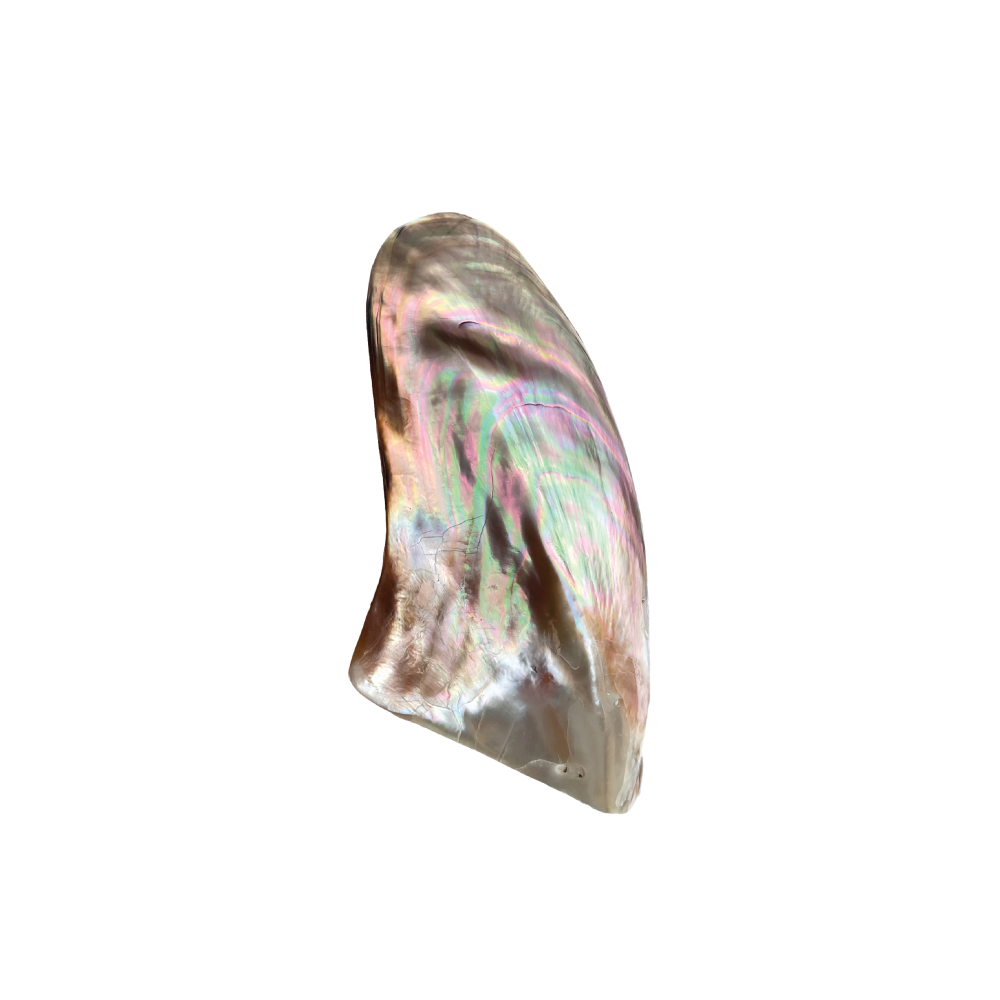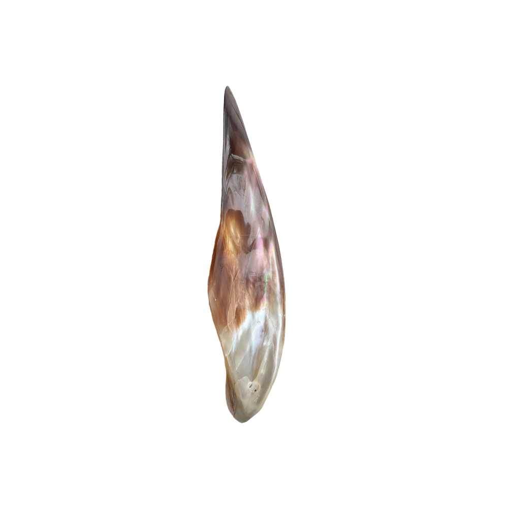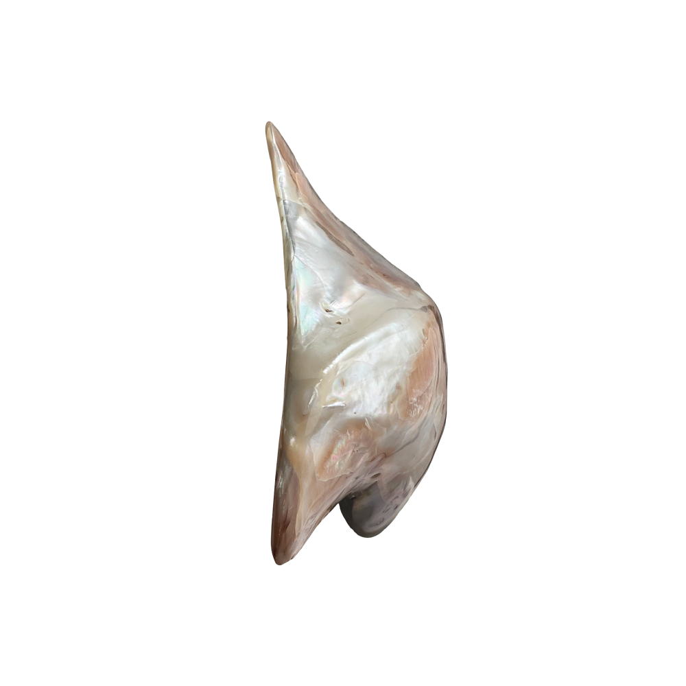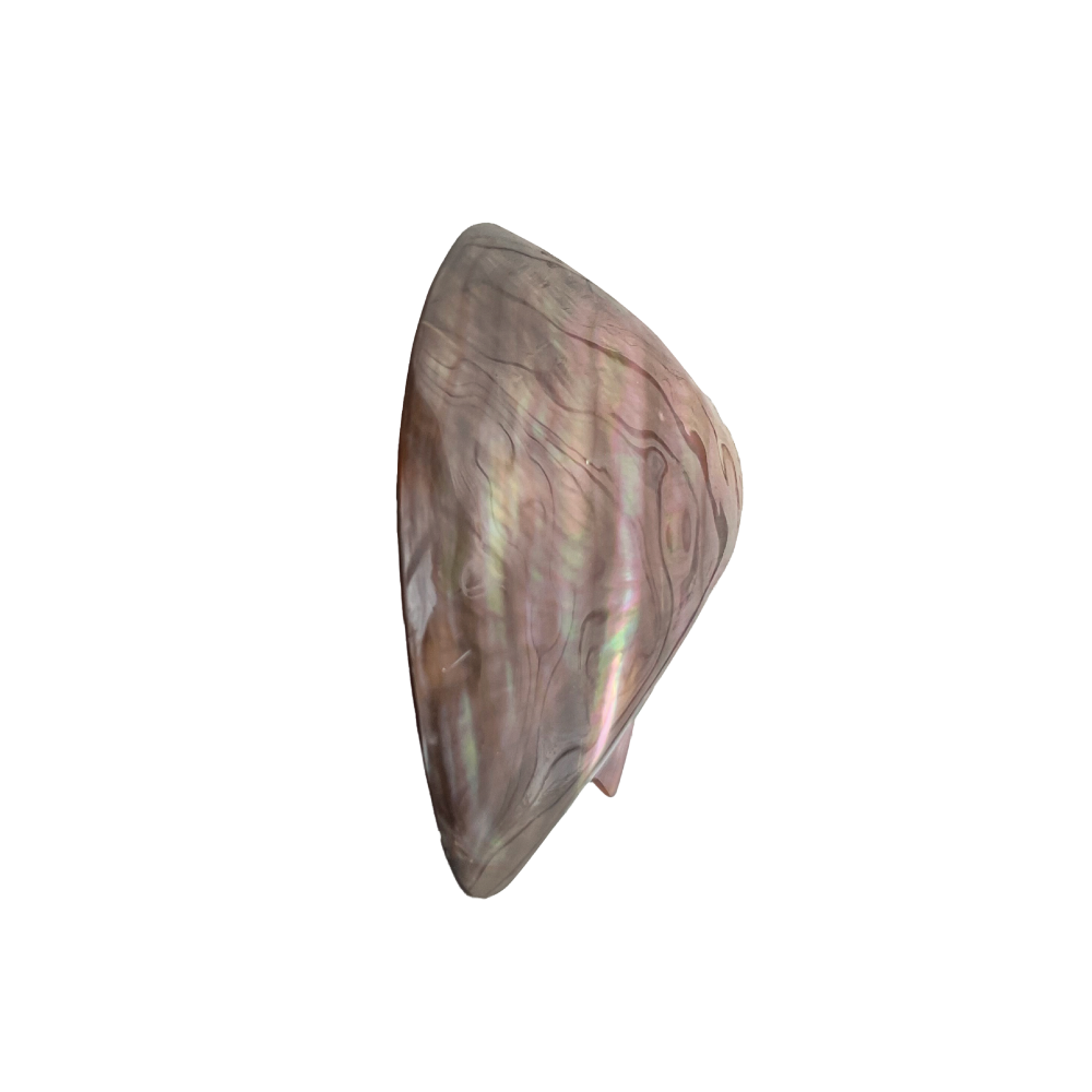 Also known as the “Black-Fingered Wing Oyster,” this shell is remarkably shaped like a bird’s wing. While the outside is dark and rustic, the inside is coated in a thick layer of high-luster “Mother of Pearl” (nacre). It is a stunning example of nature’s hidden beauty.